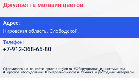 Джульетта, магазин цветов по адресу Кировская область, Слободской, в дальнейшем Организация, размещена в следующих категориях: