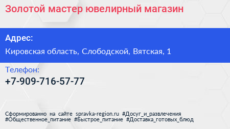 Золотой мастер, ювелирный магазин по адресу Кировская область, Слободской, Вятская, 1 в дальнейшем Организация, размещена в следующих категориях:
