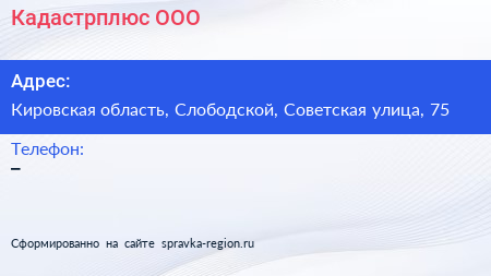 Кадастрплюс, ООО по адресу Кировская область, Слободской, Советская улица, 75 в дальнейшем Организация, размещена в следующих категориях: