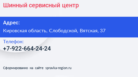 Шинный сервисный центр по адресу Кировская область, Слободской, Вятская, 37 в дальнейшем Организация, размещена в следующих категориях:
