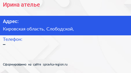 Ирина, ателье по адресу Кировская область, Слободской, в дальнейшем Организация, размещена в следующих категориях: