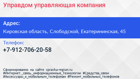 Управдом, управляющая компания по адресу Кировская область, Слободской, Екатерининская, 45 в дальнейшем Организация, размещена в следующих категориях: