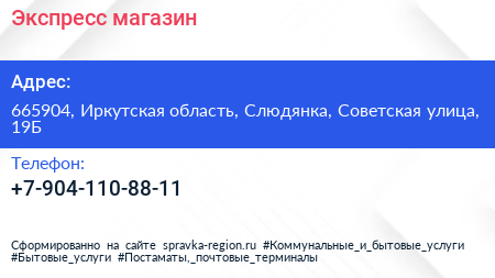 Экспресс, магазин по адресу 665904, Иркутская область, Слюдянка, Советская улица, 19Б в дальнейшем Организация, размещена в следующих категориях: