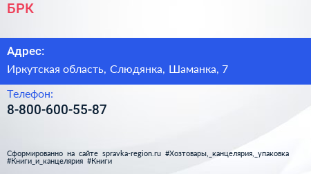 БРК по адресу Иркутская область, Слюдянка, Шаманка, 7 в дальнейшем Организация, размещена в следующих категориях: