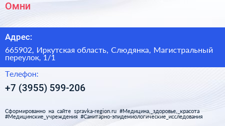 Омни по адресу 665902, Иркутская область, Слюдянка, Магистральный переулок, 1/1 в дальнейшем Организация, размещена в следующих категориях: