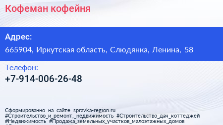 Адрес: Иркутская область, Слюдянка, Ленина, 22а