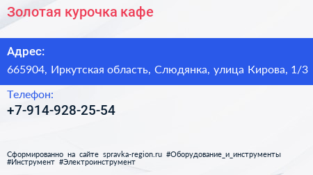 Золотая курочка, кафе по адресу 665904, Иркутская область, Слюдянка, улица Кирова, 1/3 в дальнейшем Организация, размещена в следующих категориях: