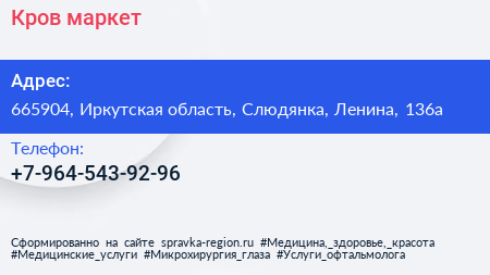 Кров-маркет по адресу 665904, Иркутская область, Слюдянка, Ленина, 136а в дальнейшем Организация, размещена в следующих категориях: