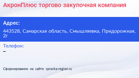 АкронПлюс, торгово-закупочная компания по адресу 443528, Самарская область, Смышляевка, Придорожная, 2г в дальнейшем Организация, размещена в следующих категориях: