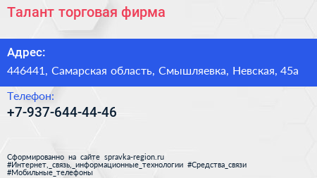 Талант, торговая фирма по адресу 446441, Самарская область, Смышляевка, Невская, 45а в дальнейшем Организация, размещена в следующих категориях: