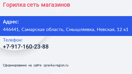 Горилка, сеть магазинов по адресу 446441, Самарская область, Смышляевка, Невская, 12 к1 в дальнейшем Организация, размещена в следующих категориях: