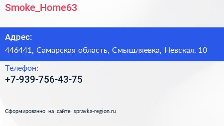 Smoke_Home63 по адресу 446441, Самарская область, Смышляевка, Невская, 10 в дальнейшем Организация, размещена в следующих категориях: