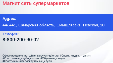 Магнит, сеть супермаркетов по адресу 446441, Самарская область, Смышляевка, Невская, 10 в дальнейшем Организация, размещена в следующих категориях: