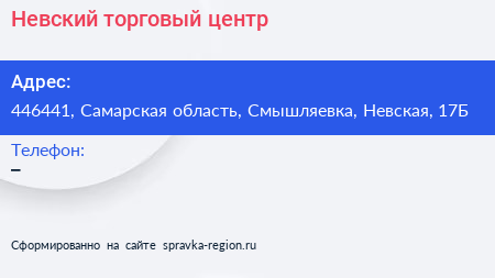 Невский, торговый центр по адресу 446441, Самарская область, Смышляевка, Невская, 17Б в дальнейшем Организация, размещена в следующих категориях: