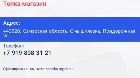 Топка, магазин по адресу 443528, Самарская область, Смышляевка, Придорожная, 2г в дальнейшем Организация, размещена в следующих категориях: