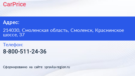 CarPrice по адресу 214030, Смоленская область, Смоленск, Краснинское шоссе, 37 в дальнейшем Организация, размещена в следующих категориях: