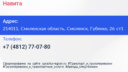 Навита по адресу 214011, Смоленская область, Смоленск, Губенко, 26 ст1 в дальнейшем Организация, размещена в следующих категориях: