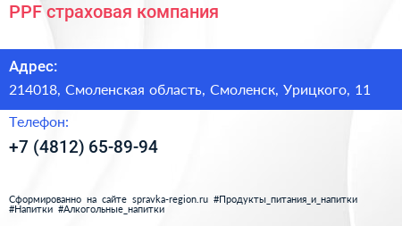 PPF, страховая компания по адресу 214018, Смоленская область, Смоленск, Урицкого, 11 в дальнейшем Организация, размещена в следующих категориях: