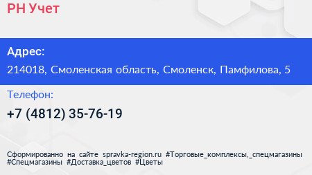 РН-Учет по адресу 214018, Смоленская область, Смоленск, Памфилова, 5 в дальнейшем Организация, размещена в следующих категориях: