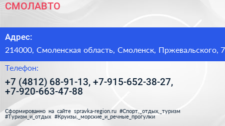 СМОЛАВТО по адресу 214000, Смоленская область, Смоленск, Пржевальского, 7 в дальнейшем Организация, размещена в следующих категориях: