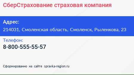 СберСтрахование, страховая компания по адресу 214031, Смоленская область, Смоленск, Рыленкова, 23 в дальнейшем Организация, размещена в следующих категориях:
