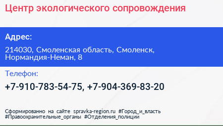 Центр экологического сопровождения по адресу 214030, Смоленская область, Смоленск, Нормандия-Неман, 8 в дальнейшем Организация, размещена в следующих категориях: