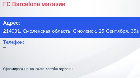 FC Barcelona, магазин по адресу 214031, Смоленская область, Смоленск, 25 Сентября, 35а в дальнейшем Организация, размещена в следующих категориях: