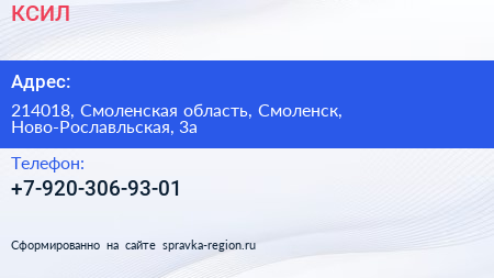 КСИЛ по адресу 214018, Смоленская область, Смоленск, Ново-Рославльская, 3а в дальнейшем Организация, размещена в следующих категориях: