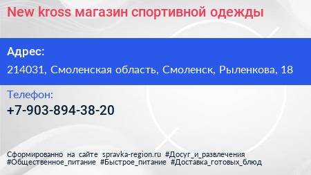 New kross, магазин спортивной одежды по адресу 214031, Смоленская область, Смоленск, Рыленкова, 18 в дальнейшем Организация, размещена в следующих категориях: