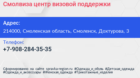 Смолвиза, центр визовой поддержки по адресу 214000, Смоленская область, Смоленск, Дохтурова, 3 в дальнейшем Организация, размещена в следующих категориях: