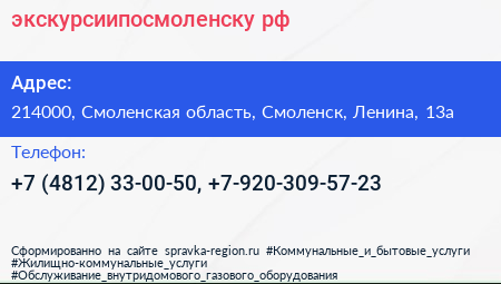 экскурсиипосмоленску.рф по адресу 214000, Смоленская область, Смоленск, Ленина, 13а в дальнейшем Организация, размещена в следующих категориях: