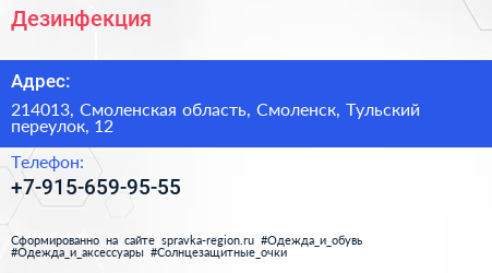 Дезинфекция по адресу 214013, Смоленская область, Смоленск, Тульский переулок, 12 в дальнейшем Организация, размещена в следующих категориях: