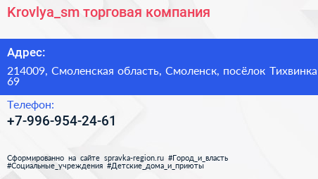 Krovlya_sm, торговая компания по адресу 214009, Смоленская область, Смоленск, посёлок Тихвинка, 69 в дальнейшем Организация, размещена в следующих категориях: