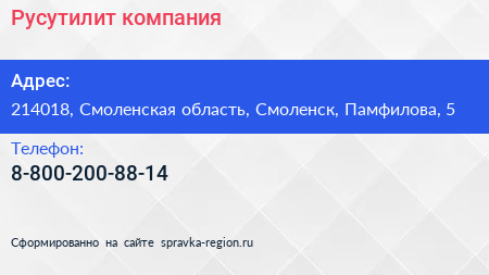 Русутилит, компания по адресу 214018, Смоленская область, Смоленск, Памфилова, 5 в дальнейшем Организация, размещена в следующих категориях: