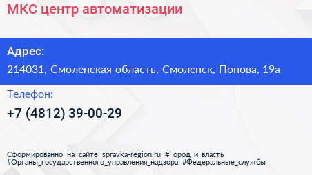 МКС, центр автоматизации по адресу 214031, Смоленская область, Смоленск, Попова, 19а в дальнейшем Организация, размещена в следующих категориях: