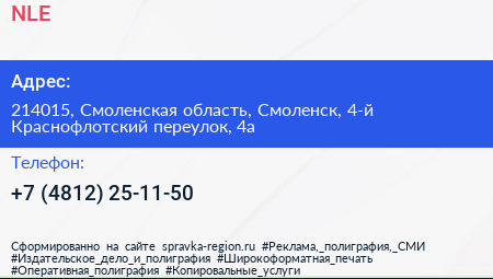 NLE по адресу 214015, Смоленская область, Смоленск, 4-й Краснофлотский переулок, 4а в дальнейшем Организация, размещена в следующих категориях: