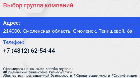 Выбор, группа компаний по адресу 214000, Смоленская область, Смоленск, Тенишевой, 6а в дальнейшем Организация, размещена в следующих категориях: