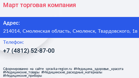 Март, торговая компания по адресу 214014, Смоленская область, Смоленск, Твардовского, 1в в дальнейшем Организация, размещена в следующих категориях: