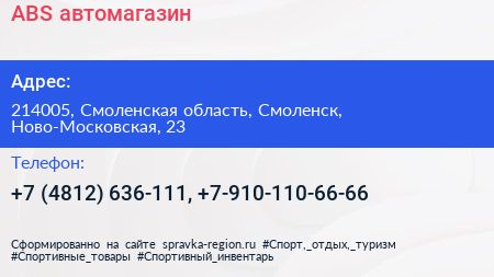 ABS, автомагазин по адресу 214005, Смоленская область, Смоленск, Ново-Московская, 23 в дальнейшем Организация, размещена в следующих категориях: