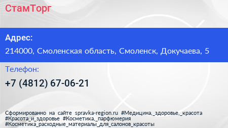СтамТорг по адресу 214000, Смоленская область, Смоленск, Докучаева, 5 в дальнейшем Организация, размещена в следующих категориях: