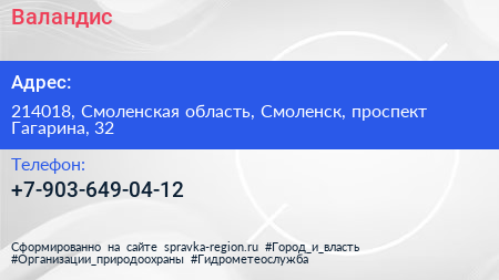 Валандис по адресу 214018, Смоленская область, Смоленск, проспект Гагарина, 32 в дальнейшем Организация, размещена в следующих категориях: