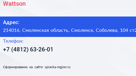 Wattson по адресу 214016, Смоленская область, Смоленск, Соболева, 104 ст2 в дальнейшем Организация, размещена в следующих категориях: