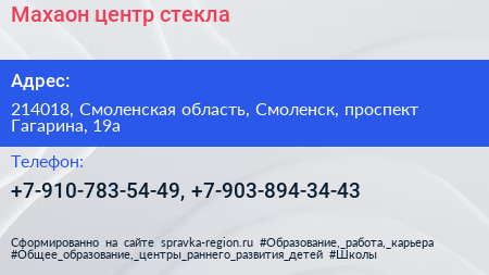 Махаон, центр стекла по адресу 214018, Смоленская область, Смоленск, проспект Гагарина, 19а в дальнейшем Организация, размещена в следующих категориях: