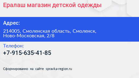 Ералаш, магазин детской одежды по адресу 214005, Смоленская область, Смоленск, Ново-Московская, 2/8 в дальнейшем Организация, размещена в следующих категориях: