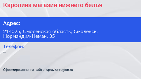 Каролина, магазин нижнего белья по адресу 214025, Смоленская область, Смоленск, Нормандия-Неман, 35 в дальнейшем Организация, размещена в следующих категориях: