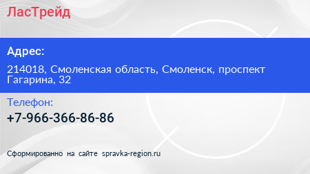 ЛасТрейд по адресу 214018, Смоленская область, Смоленск, проспект Гагарина, 32 в дальнейшем Организация, размещена в следующих категориях: