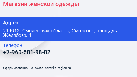 Магазин женской одежды по адресу 214012, Смоленская область, Смоленск, площадь Желябова, 1 в дальнейшем Организация, размещена в следующих категориях: