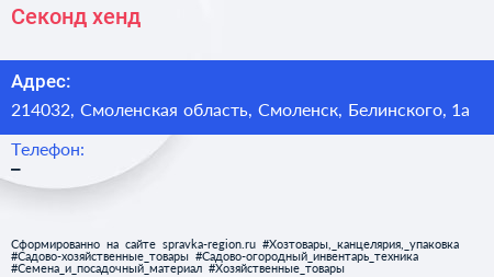Секонд-хенд по адресу 214032, Смоленская область, Смоленск, Белинского, 1а в дальнейшем Организация, размещена в следующих категориях: