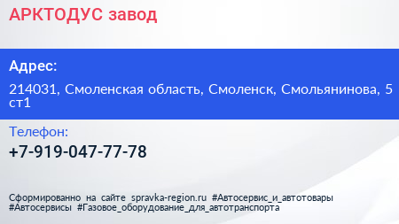 АРКТОДУС, завод по адресу 214031, Смоленская область, Смоленск, Смольянинова, 5 ст1 в дальнейшем Организация, размещена в следующих категориях: