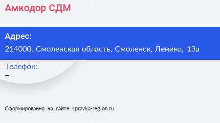 Амкодор-СДМ по адресу 214000, Смоленская область, Смоленск, Ленина, 13а в дальнейшем Организация, размещена в следующих категориях: